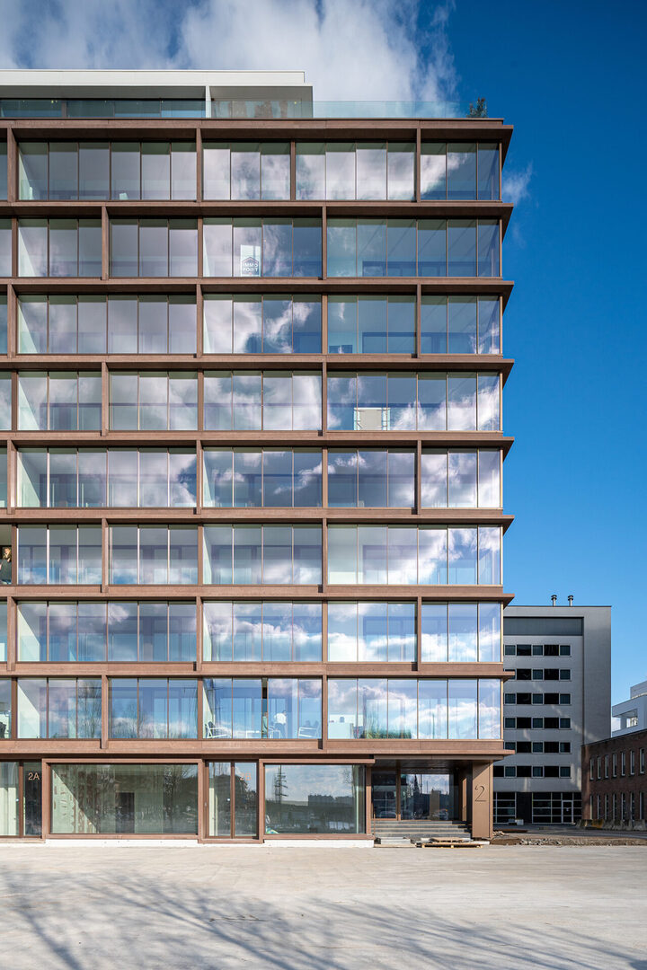 Het ontwerp is een eerbetoon aan de Schelde en de haven van Antwerpen. Het gebouw heeft een strakke, tijdloze uitstraling met een statig frame in donkergekleurd gepolijst beton, wat bijdraagt aan het exclusieve karakter van het complex. De appartementen beschikken over afsluitbare terrassen die fungeren als verlengstuk van de woonruimtes en een panoramisch uitzicht op de Schelde bieden.